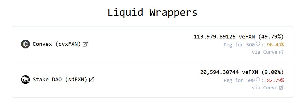 Finally, as FXN can be locked for a max duration of 4 years, liquid locker protocol has emerged launching a FXN War. You can lock FXN on those protocols and receive derivative of FXN. Mind that conversion is one way only. You cannot redeem to the native asset, but liquidity is available on DEX to allow swapping.