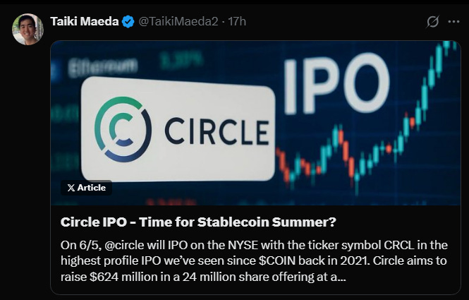 And with Circle IPO coming in, there might be some re-rating of stablecoin issuer project. Thansk Taiki for spotting this: