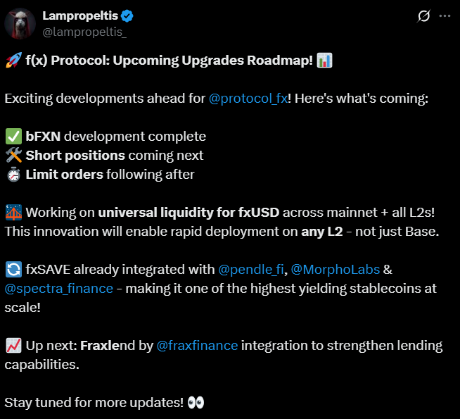 I strongly suggest to follow this project, as if the bull market tends to resume and BTC & ETH break ATH over ATH, expect a lof of people to leverage their position, increase stablecoin yield, deeper liquidity for fxUSD….