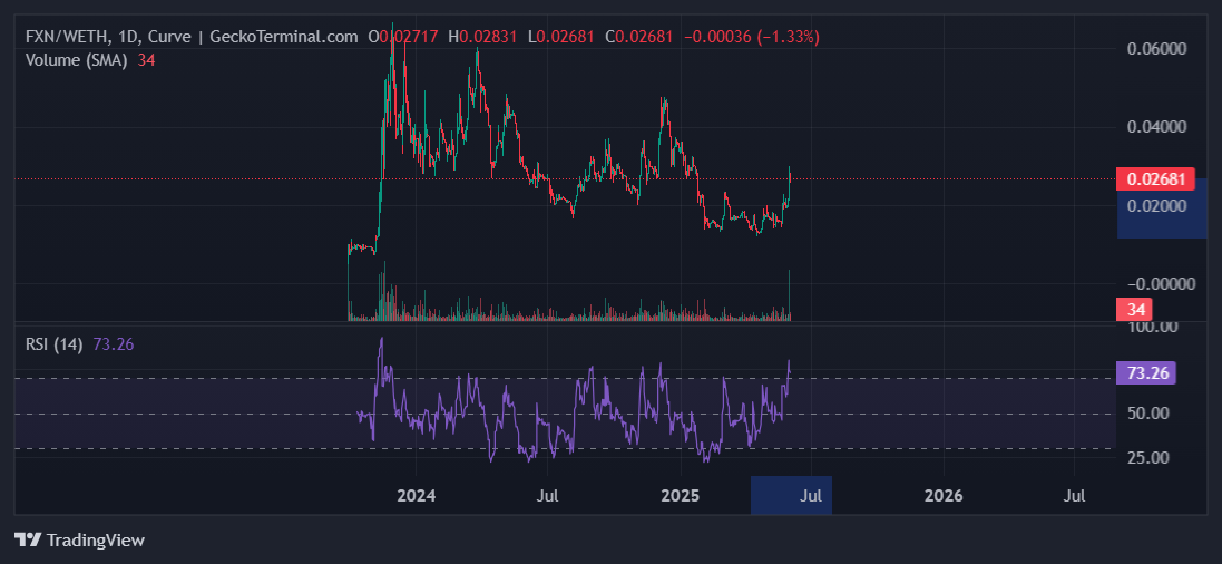 On the price side, FXN against ETH has shown great growth with +130% from the bottom.