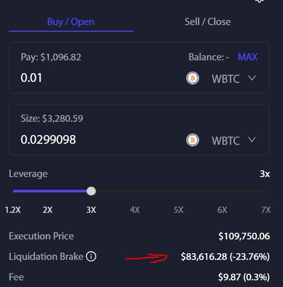 FX protocol allows you to deposit open a long leverage position on $ETH or $BTC from 2x to 7x without the risk of being liquidated.